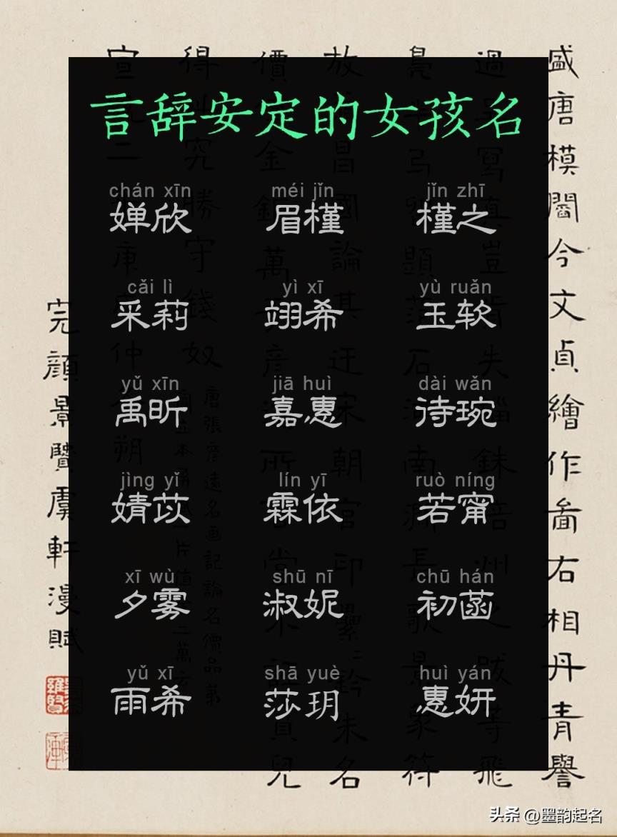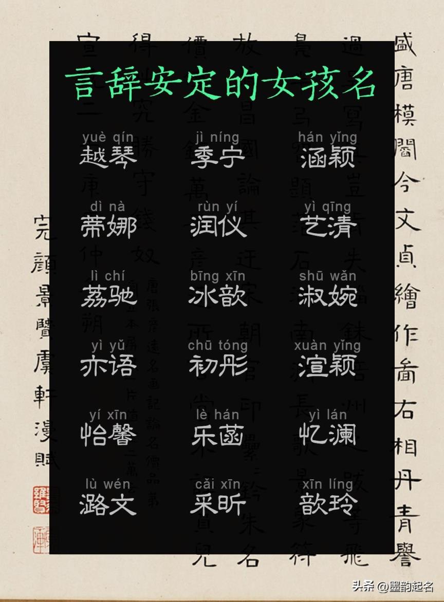 墨韵起名:言辞安定的女孩名