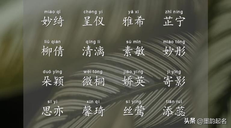 点评:杜牧的诗文曾这样形容女子“却爱蓝罗裙子,羡他长束纤腰”,以“纤腰”的体态来表述出女子的柔美婉约,将纤字入女孩名,指女孩温婉淑美。如与纤字搭配,字的发音和结构中暗含“仙女”之意,创意洋气。