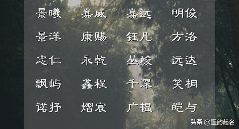 「松晖」:寓意松月夜凉,余影斜晖。出自《题天竺寺》“萋萋芳草重回首,十里松门照落晖。”