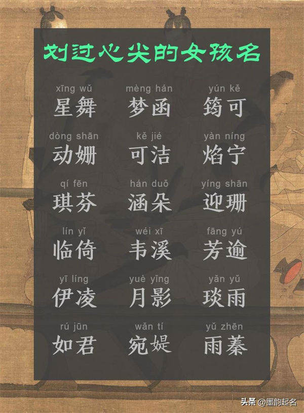 给女孩起名,最常见的是起以美为内涵的名字。追求仪态美、风度美、气质美。我认为女孩子名字的内涵还应更丰富,更有新意,让人有联想。 今天子墨老师把这样时光静好,岁月安然